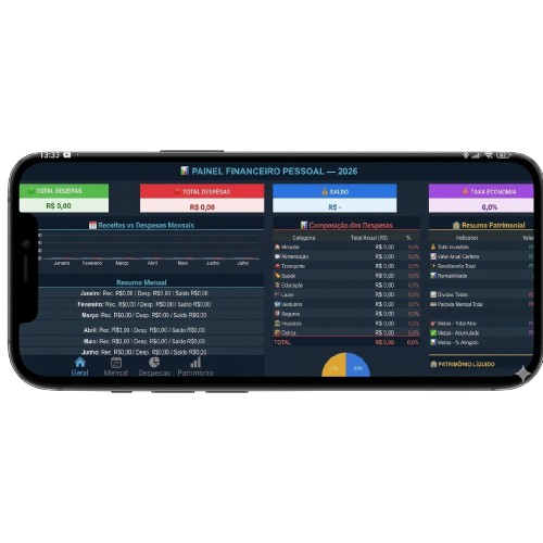 Visual limpo, profissional e fácil de usar. Não parece aquelas planilhas feias de 2010.